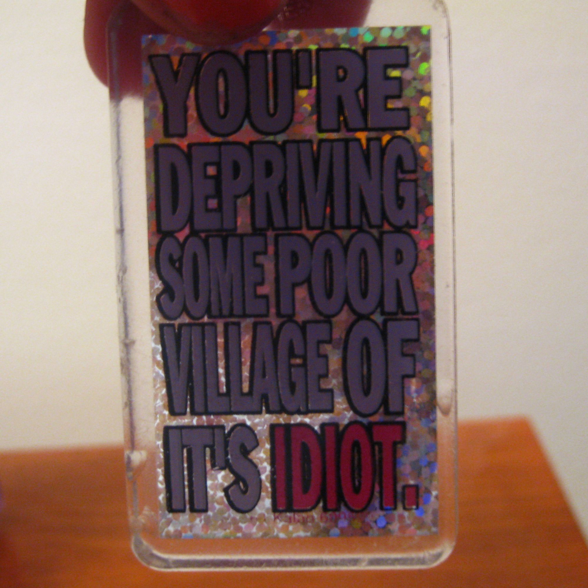 I am embarrassed to say that I did not catch the unnecessary apostrophe on this keychain before I bought it. In fact, I bought this in high school and apparently didn't read it until some time in college. No need to fight, folks; there's plenty of irony for everyone.